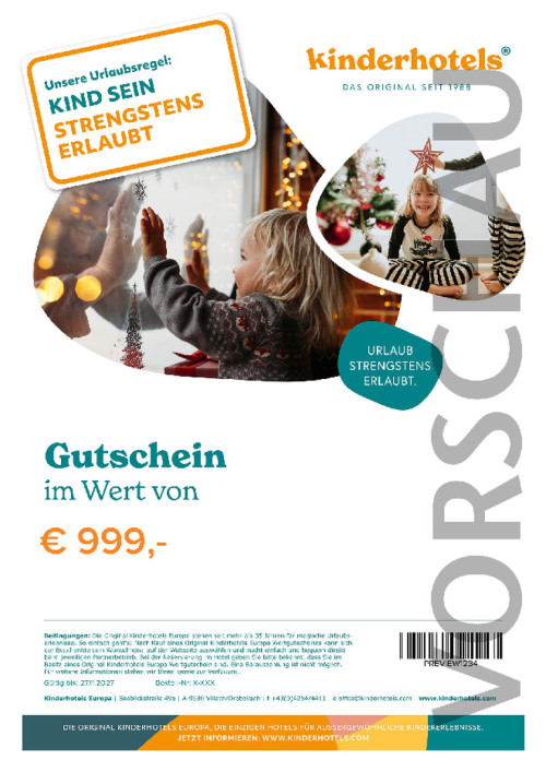 Your Christmas gift from me is the perfect family holiday, including baby and child care, at Kinderhotels Europa, with the wish that you and your loved ones will have a totally relaxed start to the New Year.